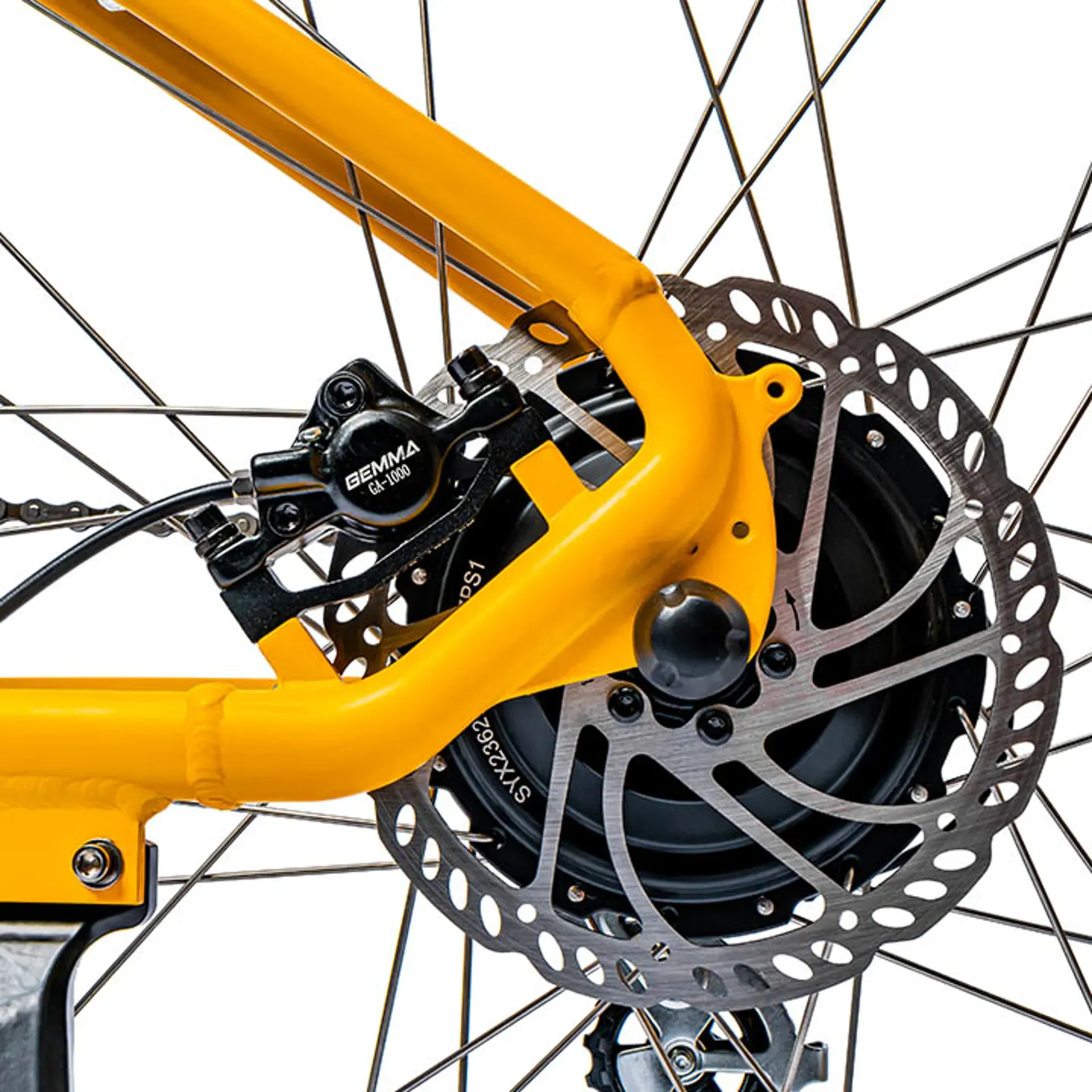 The hydraulic disc brakes, featuring 180mm rotors, are specifically designed for e-bikes, offering unparalleled stopping power in all conditions. The 27.5" alloy double-wall rims, mounted on quick-release alloy hubs.