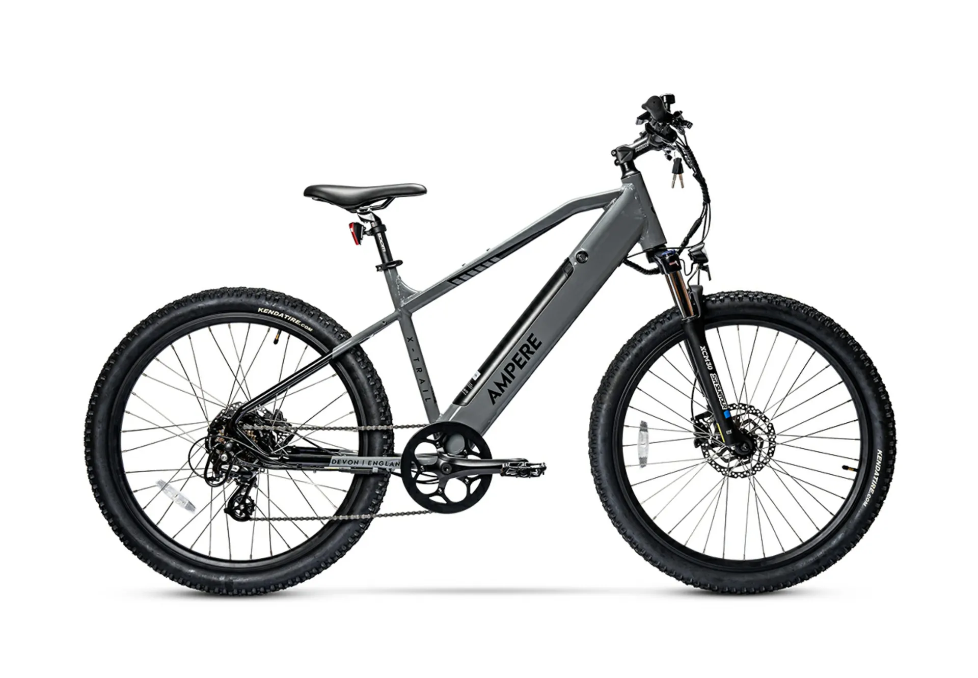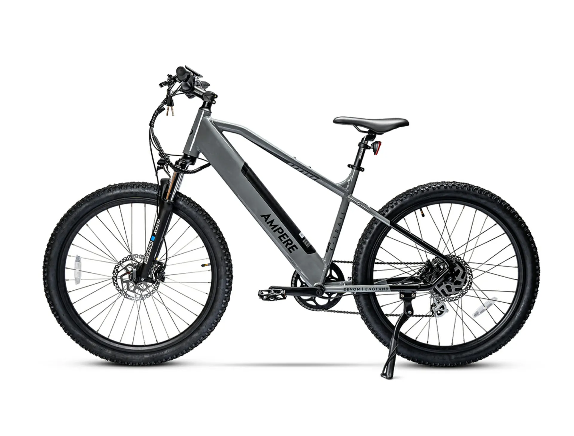 The Ampere X-Trail Electric Mountain Bike with 27.5-inch wheels is a rugged yet versatile off-road companion, designed to conquer the most challenging terrain with ease. Its robust frame and suspension system provide stability and control, allowing riders to tackle steep inclines and rocky trails with confidence. Powered by a high-torque electric motor, the X-Trail delivers exceptional performance, effortlessly assisting riders in navigating tough terrain while maintaining a thrilling riding experience. The 27.5-inch wheels offer a perfect balance of agility and stability, ensuring a smooth ride over uneven surfaces. Equipped with a long-lasting battery, riders can explore remote trails without worrying about running out of power. With features such as adjustable suspension, hydraulic disc brakes, and a digital display, the Ampere X-Trail offers both comfort and convenience for adventurous riders. Whether shredding through rugged trails or embarking on epic mountain adventures, the Ampere X-Trail Electric Mountain Bike is built to exceed expectations and ignite the spirit of exploration.
