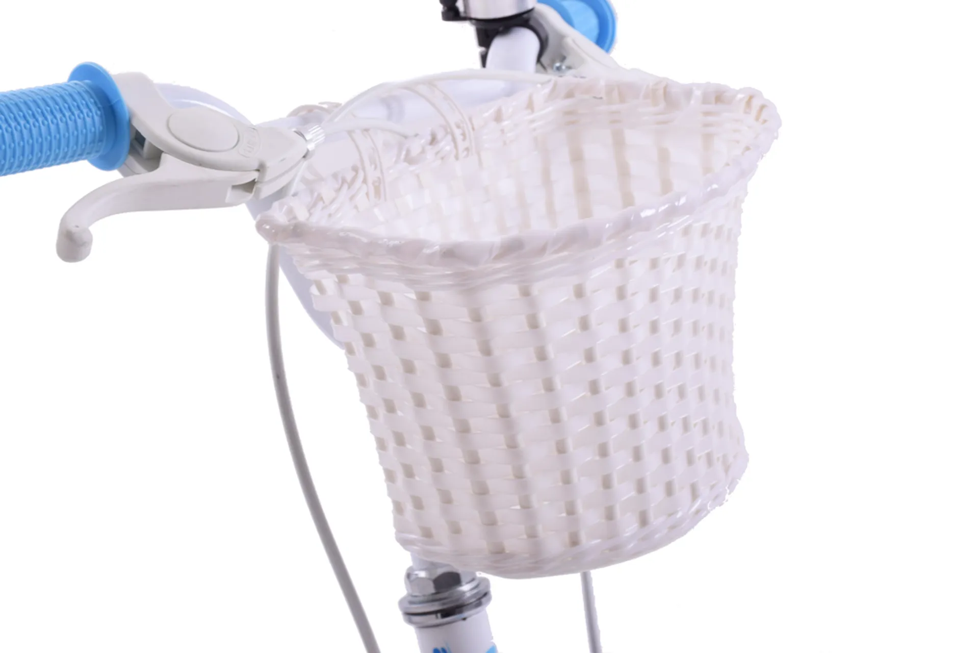 Built with a low step over a steel frame, caliper brakes, a fully enclosed chain guard to keep their little fingers out of danger, a rear dolly seat to keep their favorite toys safe at all times, a front plastic woven basket, and matching blue splash guards.