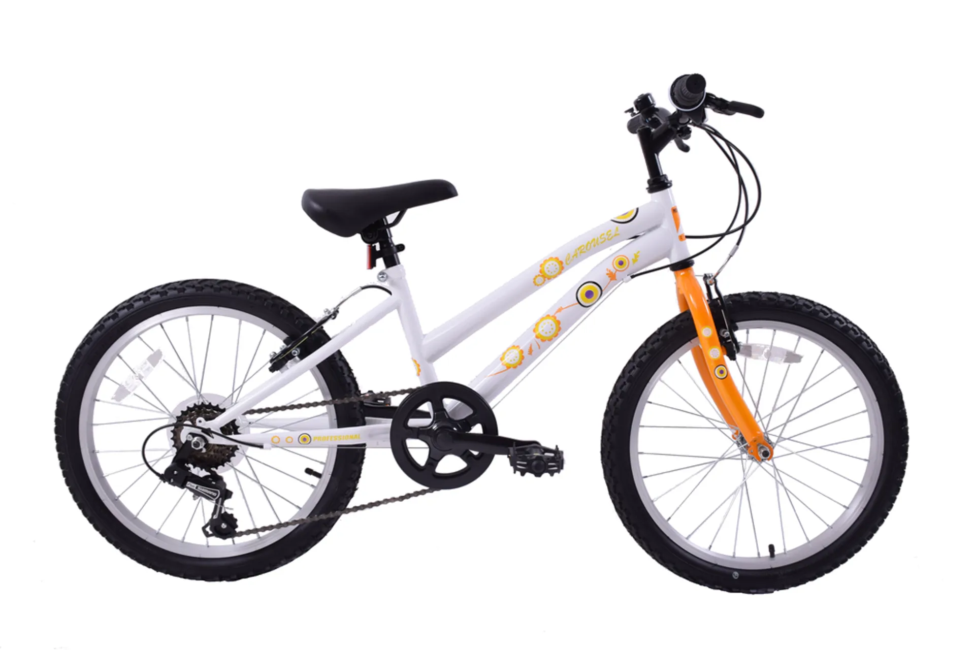The Carousel is new to the Professional 20" wheel kids bike collection in either a single speed or 6 speed versions! With a robust hi-tensile steel frame and forks and powerful front and rear v-type brakes to be sure you stop in your tracks. This version is single speed for simplicity so no hassle in shifting through the gears if your child is just not that confident with geared bikes yet and is equipped with 20" x 2.125" MTB tyres for on or off road riding and topped off at just 11.5kgs.