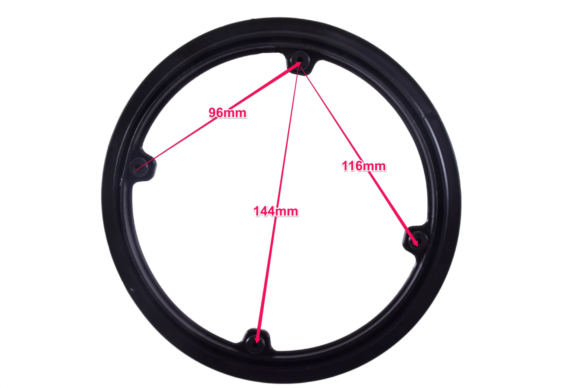 • BCD 144mm (Distance between opposite holes) / Colour: Black / Maximum fit 42 Teeth