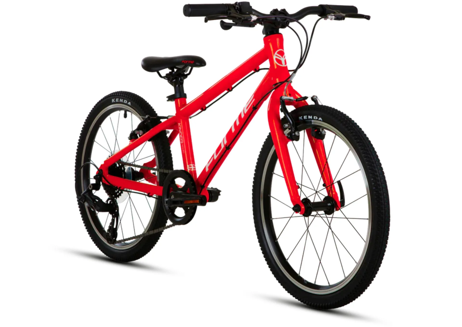 This bike is built for young riders, with a narrow handlebar and shorter stem to make steering easier. It has a comfy junior-sized saddle, light wheels, and grippy 20" Kenda Small Block 8 tyres. The lightweight aluminium frame uses narrow tubing and has a neat, fully hidden headset. An 8-speed shifter gives kids a wider range of gears to tackle different terrains, while V-brakes provide reliable stopping power, helping them stay safe and in control. Size-specific pedals make riding more comfortable, and the bike weighs just 8.47kg, making it easy to handle.
