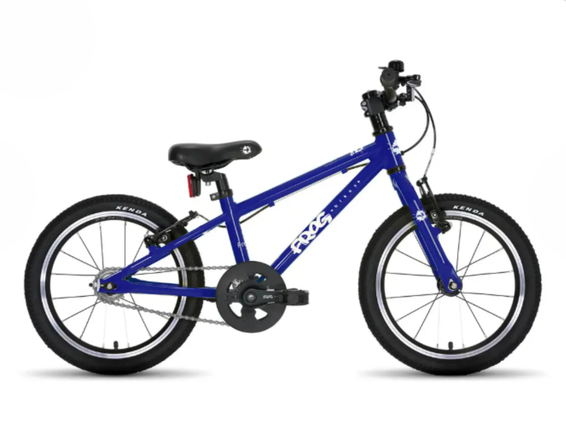 This lightweight bike weighs just 6.39kg and is thoughtfully engineered for young riders. It features patented Frog cranks positioned closer together, enhancing both comfort and pedaling efficiency for kids. Easy-reach Tektro brakes with adjustable levers are designed for smaller hands, giving children greater control and confidence. A safety steering lock helps prevent oversteering, adding an extra layer of stability. The 16" wheels are equipped with grippy Kenda 16"x1.5" tyres, ensuring a smooth and secure ride on a variety of surfaces.