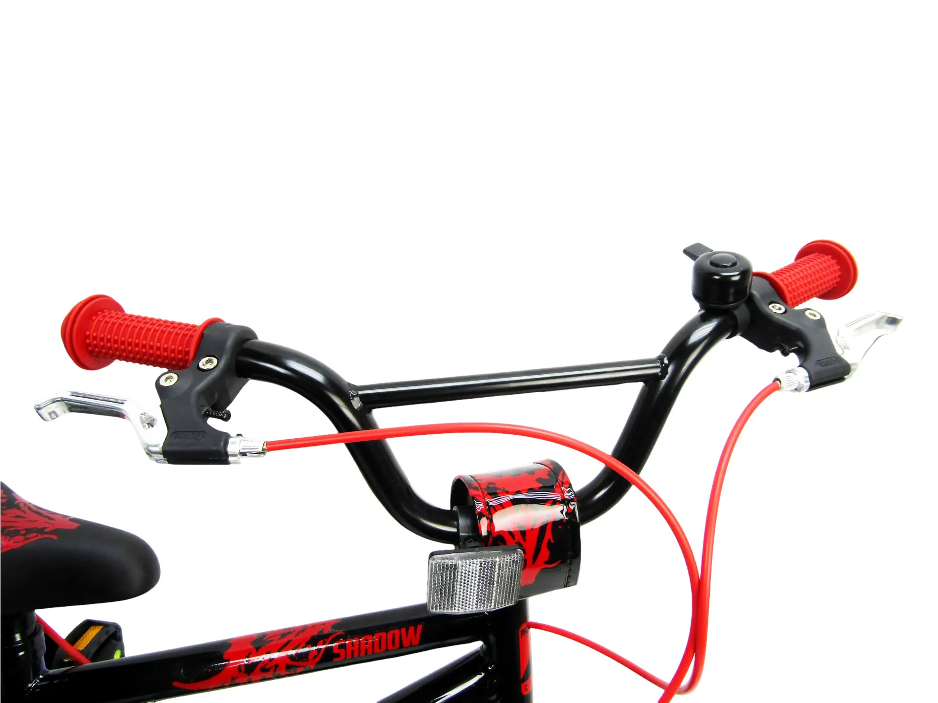 Introducing the Professional Shadow Kids' Bike, a sleek and stylish ride that promises both performance and safety. Perfectly blending a striking black and red colour scheme with high-quality components, this bike is designed for young riders who demand both style and functionality.