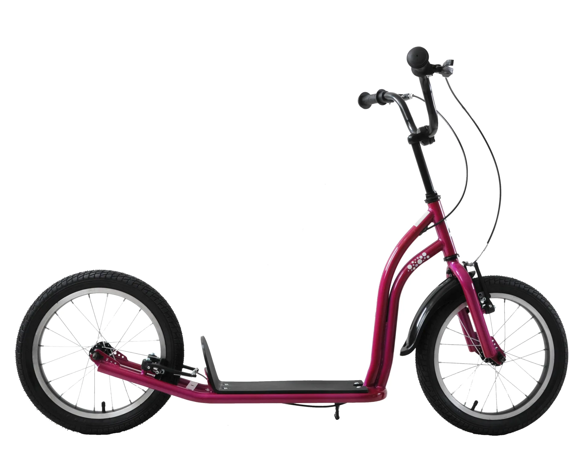The Professional scooter will be a perfect present for your child this year. It features strong steel frame, 16" pneumatic tyres, front and rear V-brakes, height adjustable handlebars, and vibrant paint finish.