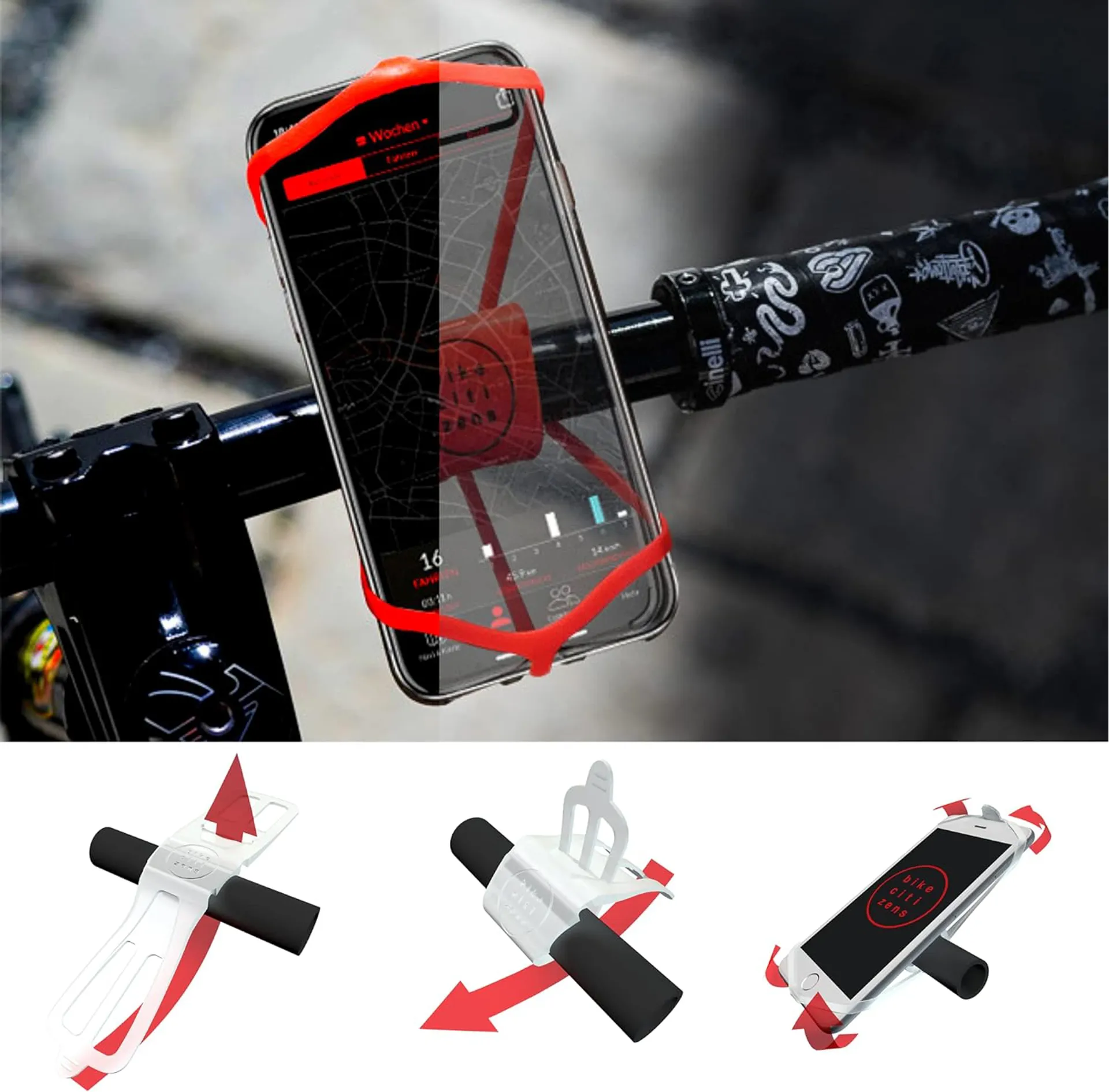 Finn securely holds your smartphone on the handlebars, regardless of the type of bike or scooter you have.